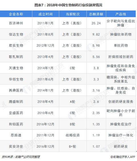 在整個(gè)產(chǎn)業(yè)鏈中,2018年為火爆的應(yīng)該是藥物研發(fā)中的生物制藥行業(yè),2018年是中國生物制藥的發(fā)展元年。同時(shí),2018年也是中國資本市場(chǎng)生物制藥爆發(fā)的年度,藥明康德(603259)回歸A股,然后百濟(jì)神州、信達(dá)生物、君實(shí)生物等公司在港股上市。但是我們應(yīng)該對(duì)這些公司區(qū)別對(duì)待,針對(duì)目前狀況來看,以百濟(jì)神州、信達(dá)生物、君實(shí)生物等初創(chuàng)公司在研發(fā)管線方面更加注重的是原研藥,這是生物醫(yī)藥公司的估值基礎(chǔ),通過原研藥開展臨床試驗(yàn),以此獲取與大型制藥公司合作開發(fā)的機(jī)會(huì),例如:首付款或者里程碑款。