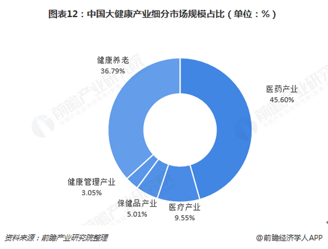 從當(dāng)前五大基本產(chǎn)業(yè)群體占比來看,由于長(zhǎng)期以來我國人口眾多,醫(yī)療服務(wù)需求龐大,以及近年來老年人口規(guī)模增長(zhǎng)迅速,因此目前我國大健康產(chǎn)業(yè)形成了以醫(yī)藥產(chǎn)業(yè)和健康養(yǎng)老為主(二者合計(jì)占比超80%),其他產(chǎn)業(yè)快速發(fā)展的局面。