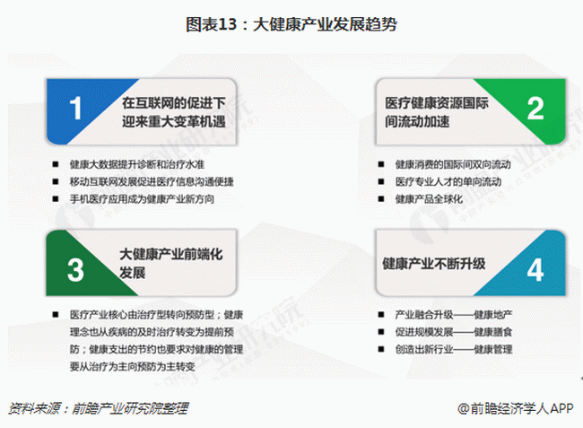 (4)健康產(chǎn)業(yè)不斷升級(jí)。健康地產(chǎn)、健康膳食、健康管理將會(huì)成為等新型商業(yè)模式將會(huì)持續(xù)創(chuàng)新。